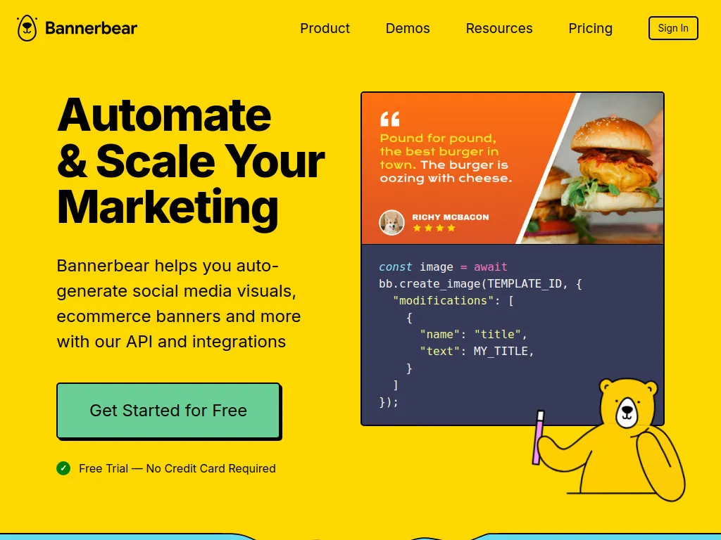 What It Does: API for automated image and video generation, perfect for social media content, e-commerce banners, and marketing visuals.